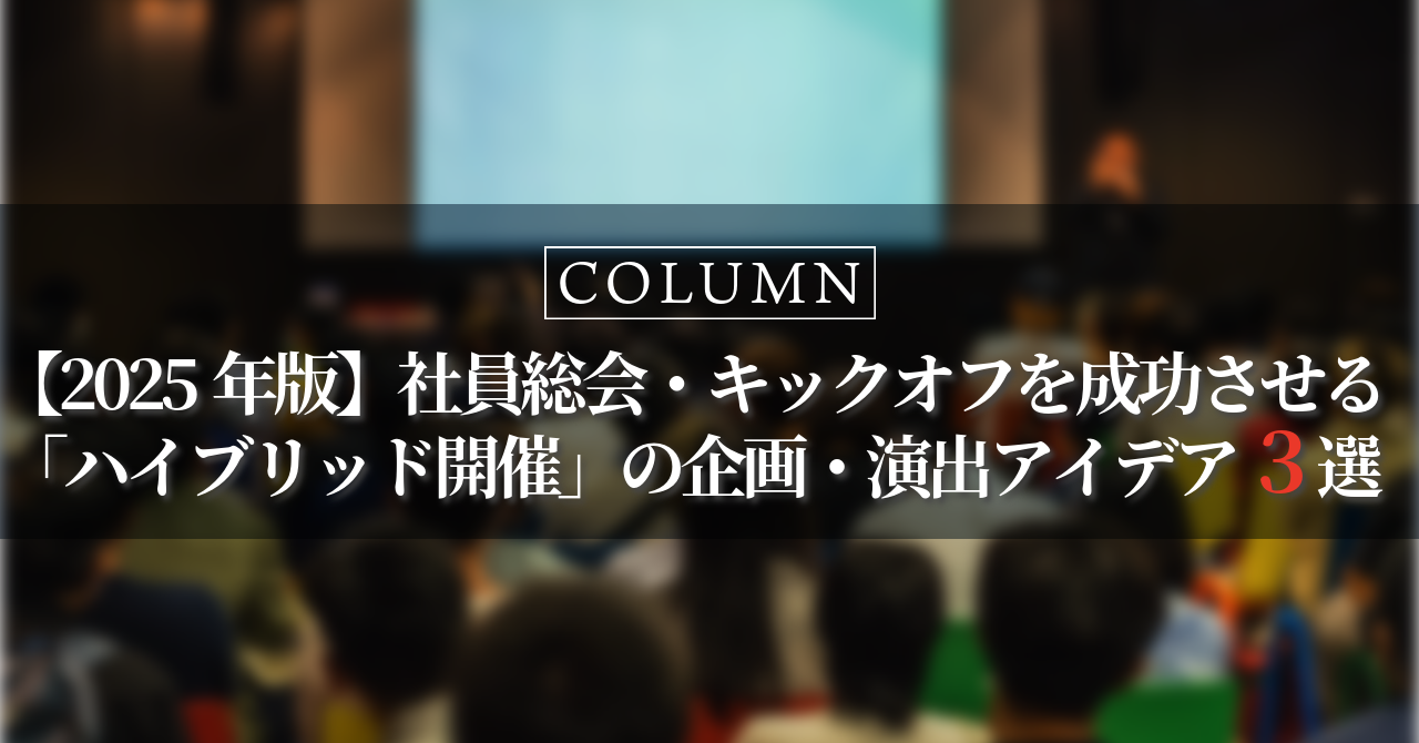【2025年版】社員総会・キックオフを成功させる「ハイブリッド開催」の企画・演出アイデア3選 投稿を読む »